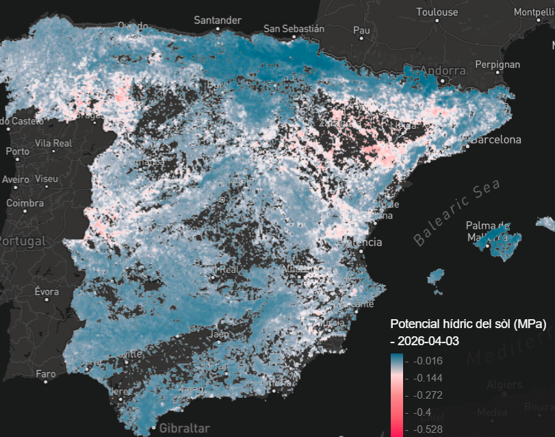 La primera d’elles és l’eina de modelització ForestDrought, desenvolupada pel CREAF, que simula diàriament el balanç hídric forestal a partir del model MEDFATE, que ofereix informació de tots els boscos d’Espanya. Integra dades meteorològiques (AEMET, SMC, MeteoGalicia i RIA), informació del sòl, el relleu i l’estructura forestal (Inventari Forestal Nacional, Mapa Forestal i LiDAR), aplicades sobre una malla de fins a 3 milions de cel·les.